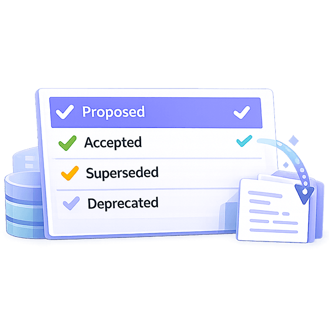 Lightweight reviews, clear lifecycle states, and audit-ready history — without turning architecture into a bureaucracy.